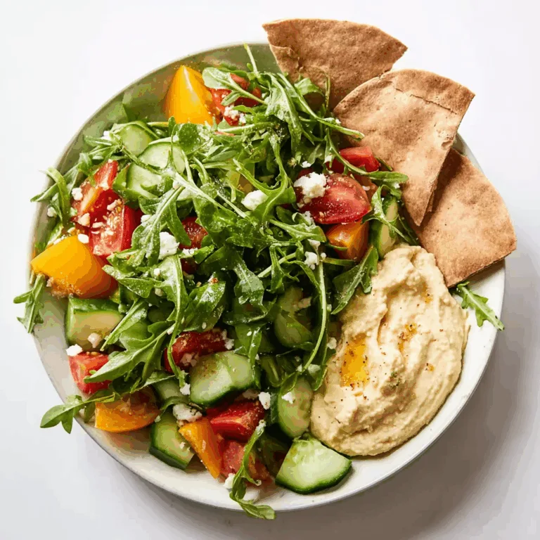Simple ingredients, big flavor – that’s what this salad delivers. The peppery arugula balances beautifully with creamy hummus and crisp cucumbers, making it a refreshing side or light lunch. It fits perfectly within easy healthy meals that feel fresh and balanced.