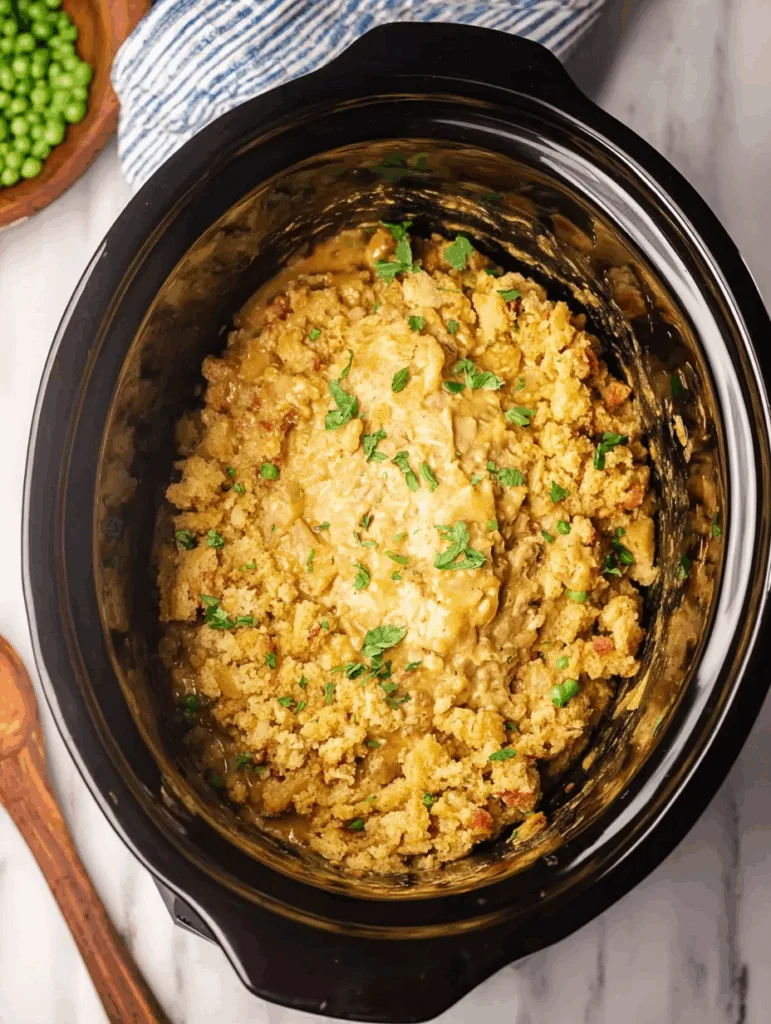 If you can’t find cream of chicken soup, you can substitute it with cream of mushroom or cream of onion soup for a slightly different taste. Choose low-sodium stock if you prefer a lighter flavor. The stuffing mix can be herb, cornbread, or savory — all work beautifully with this recipe.