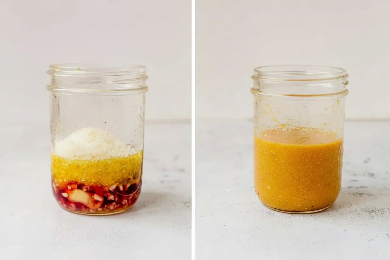- Add all of the salad dressing ingredients to a small bowl or small jar.