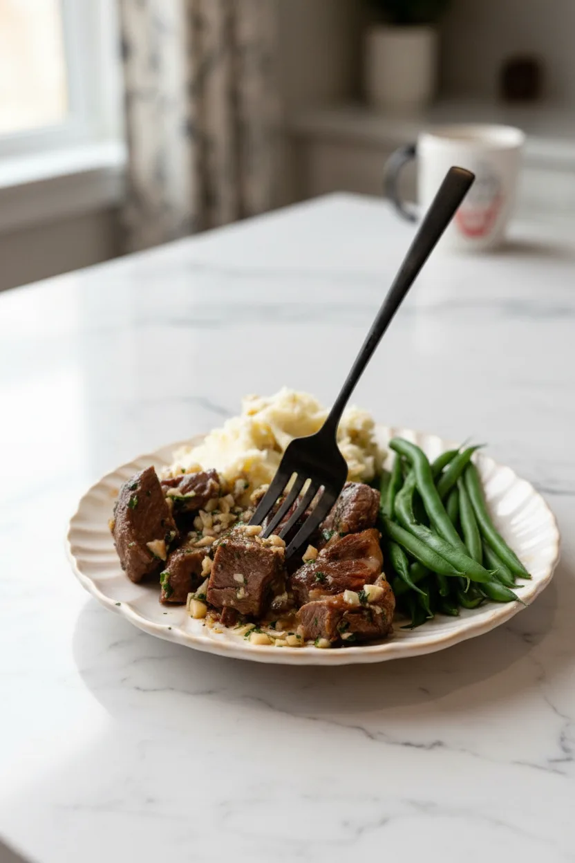 Remove garlic butter from heat immediately after cooking. Add parsley and cooked steak bites, tossing until coated in the luxurious sauce. Let the meat rest in the butter mixture about two minutes for maximum flavor absorption. Taste and adjust seasoning before serving.