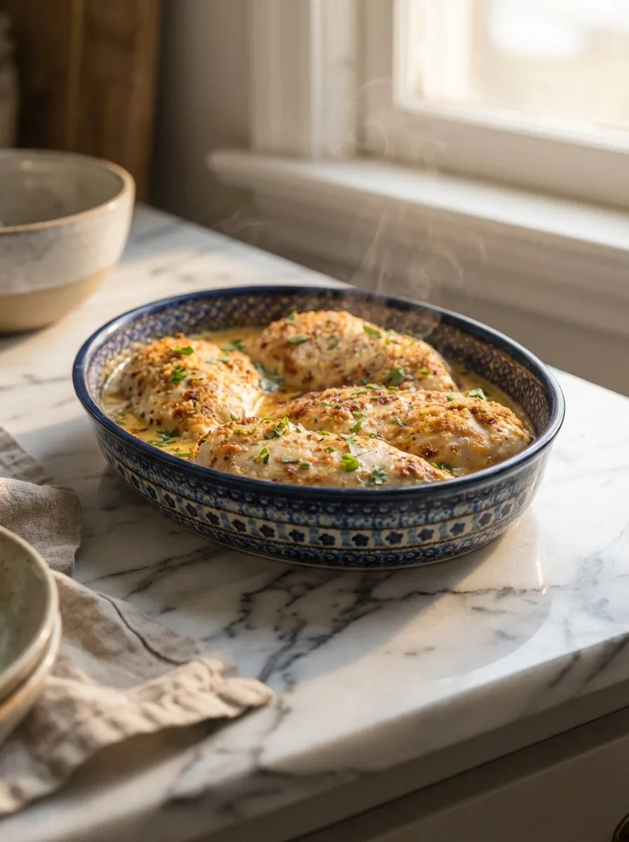 The combination of tangy dressing, creamy sauce, and salty Parmesan creates universal appeal. Even picky eaters enjoy cheesy baked chicken with savory notes.