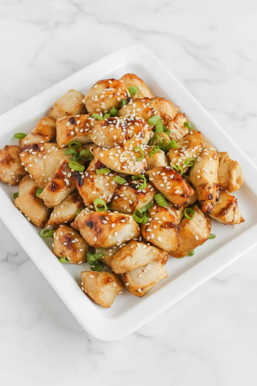 Juicy chicken cubes coated in homemade gluten-free teriyaki sauce, perfectly cooked in your air fryer for a quick weeknight dinner.