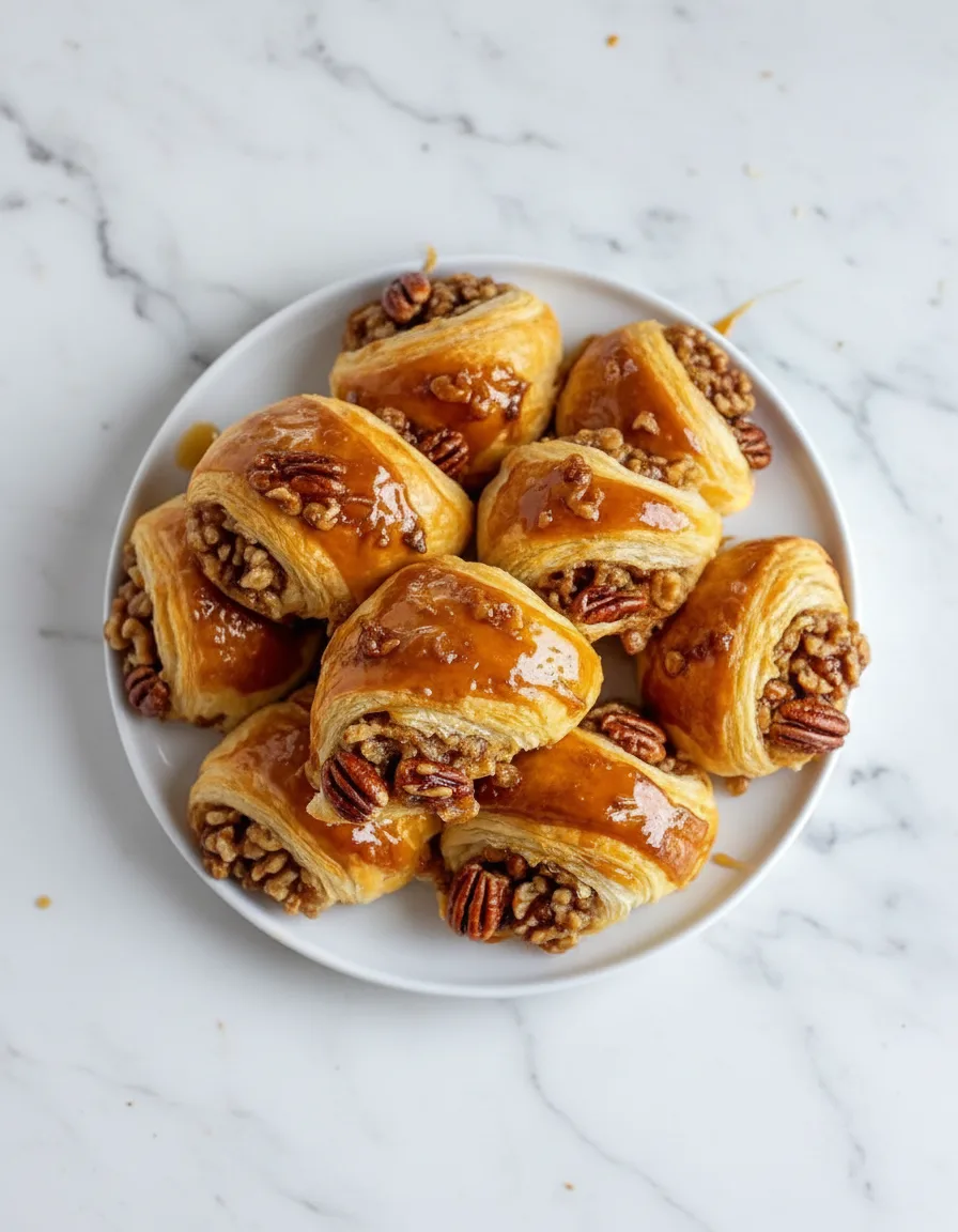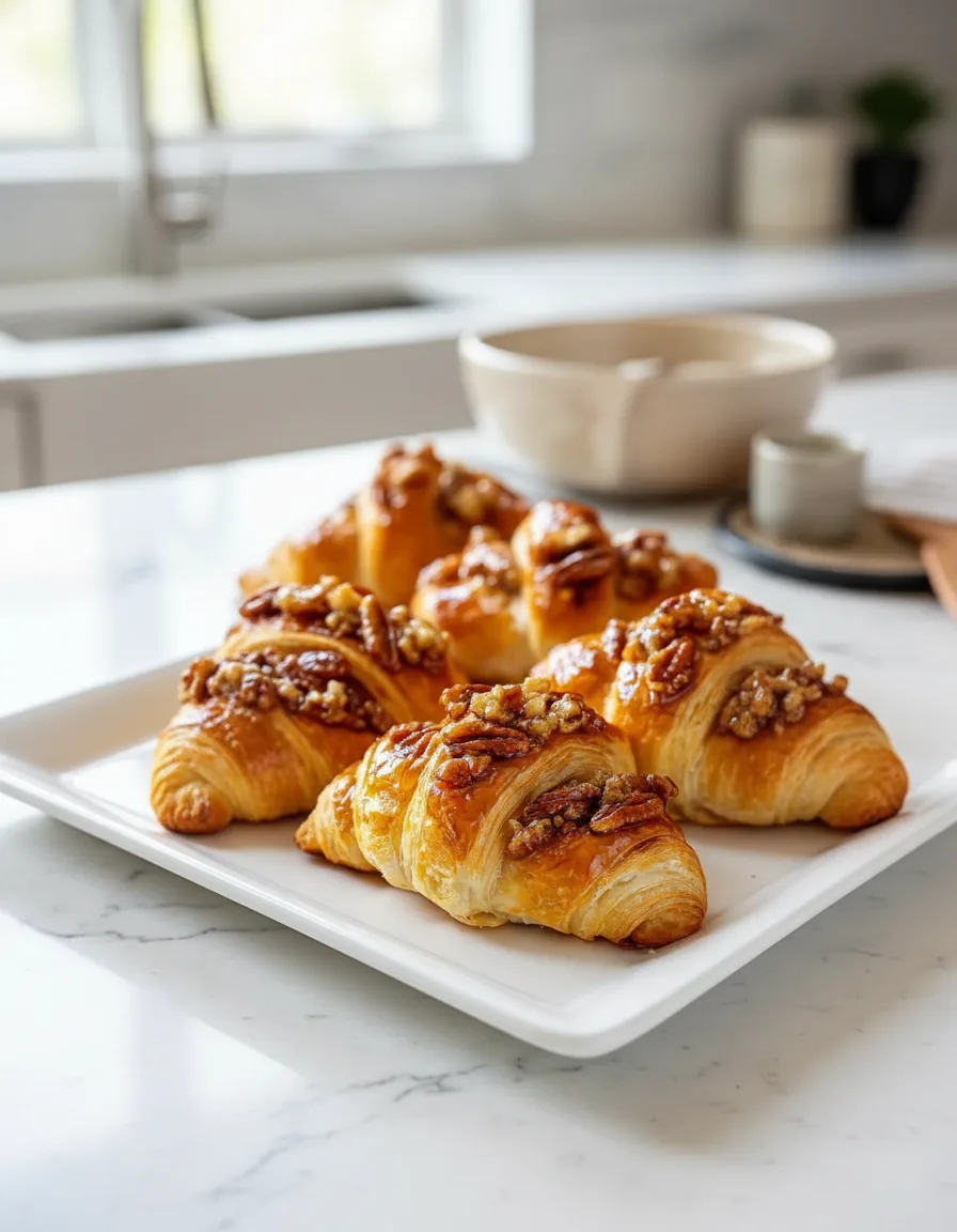 Flaky crescent rolls filled with a sweet pecan mixture create an irresistible pastry perfect for breakfast or dessert.