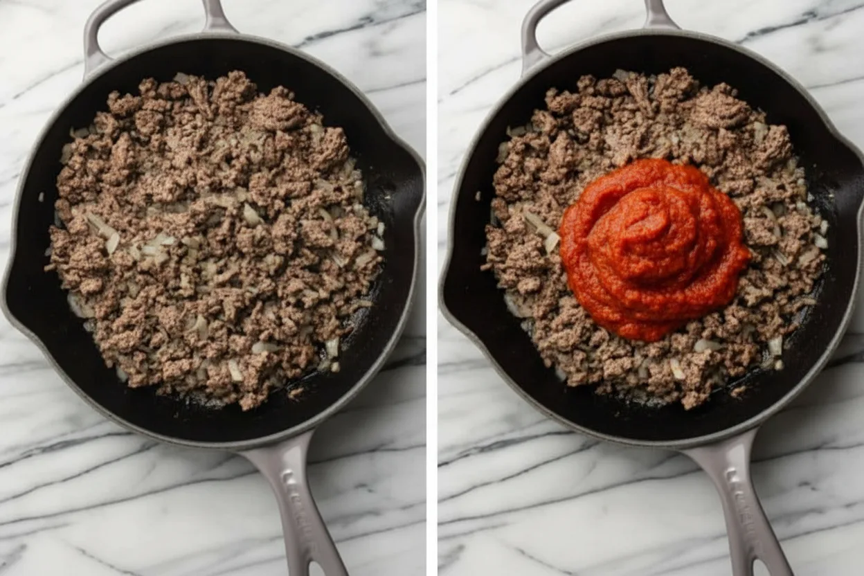 The rich marinara sauce melds with savory beef and sharp cheddar cheese. For extra flavor, you can experiment with adding herbs or mixing different cheeses as we’ll discuss later.