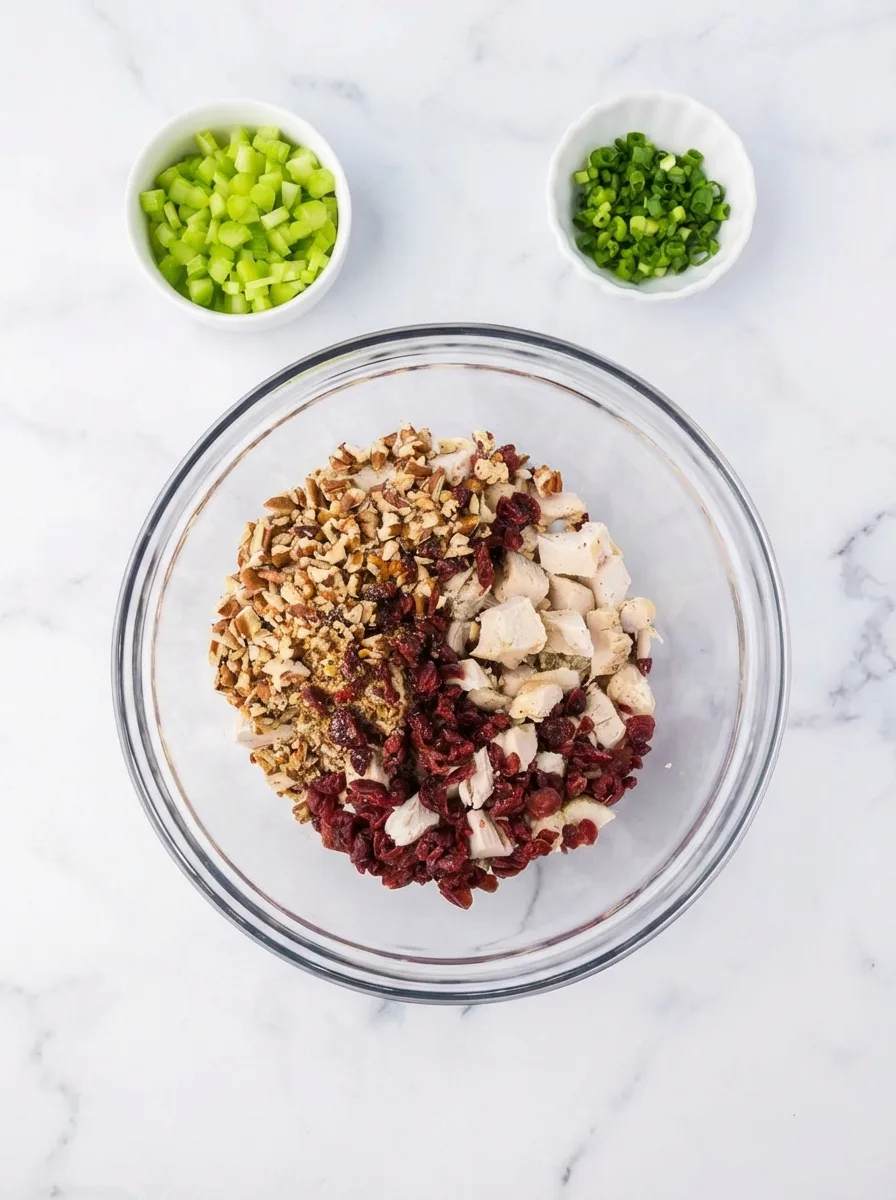 The core ingredients work together to create the perfect texture and flavor profile. Cooked chicken forms the foundation while pecans add crunch. Dried cranberries bring sweetness, and celery provides refreshing crispness. Green onions lend mild onion flavor without overpowering other ingredients.