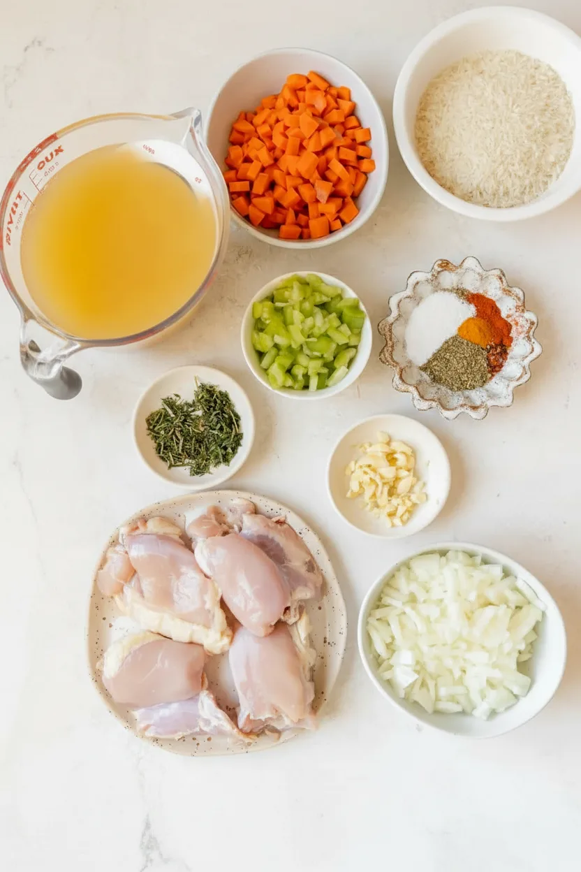 Our creamy chicken and rice soup brings restaurant-quality flavor to your home kitchen. Its rich texture comes not just from cream, but from the starchy goodness released by slow-cooked rice.