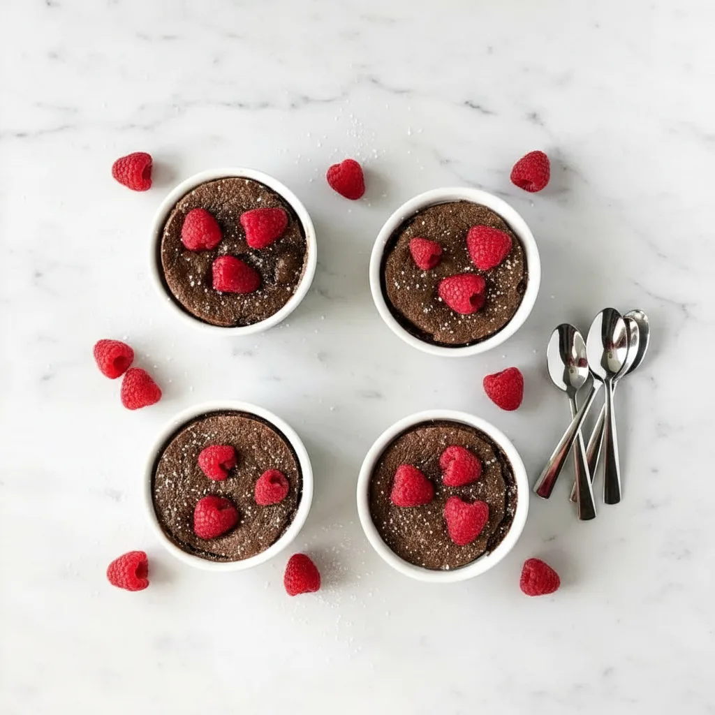 Decadent individual chocolate mousse cakes bursting with fresh raspberry flavor, baked to airy perfection in under 40 minutes.