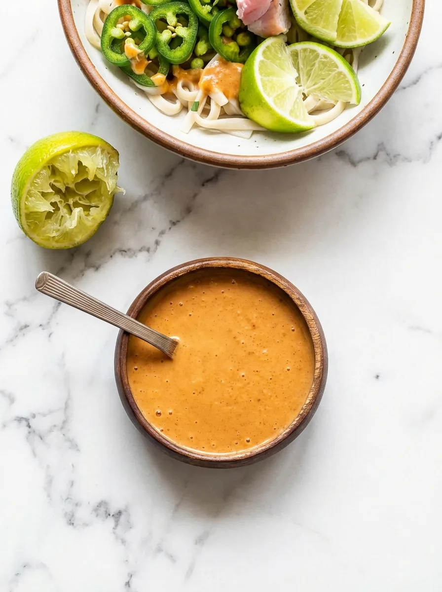 - Peanut butter: Gives the sauce its rich base – sunflower seed butter makes a good alternative