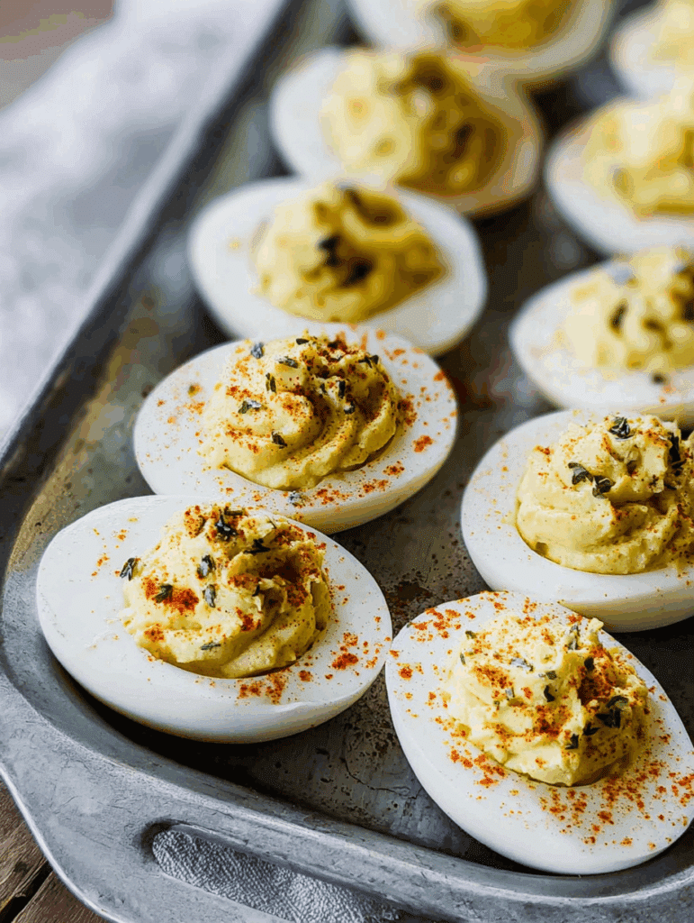 Classic deviled eggs with creamy, tangy filling. A quick and easy appetizer that’s always a crowd-pleaser, perfect for holidays, parties, or everyday snacking.