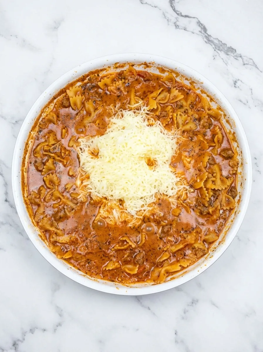 Finally, mix in shredded mozzarella cheese until it melts into velvety ribbons throughout the dish. The residual heat incorporates the cheese perfectly without overcooking it. Serve immediately while steam rises from those irresistible cheesy pockets.