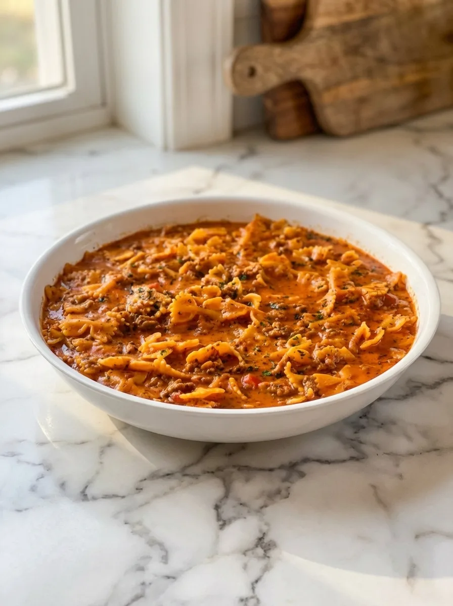Busy home cooks adore this recipe for three key reasons. First, you need just one pot to create the entire meal. Second, it takes only 20 minutes from start to finish. Third, kids and adults both cheer when this savory dish hits the table. The secret lies in the smart combination of seasoned ground beef and tender pasta swimming in a rich tomato-cheese sauce.