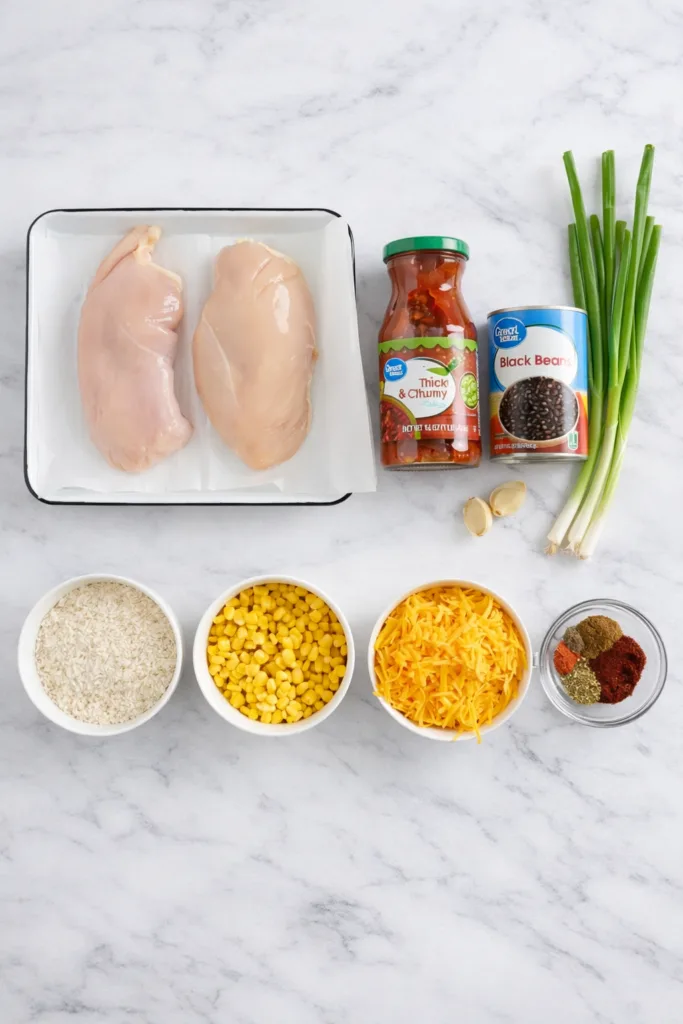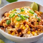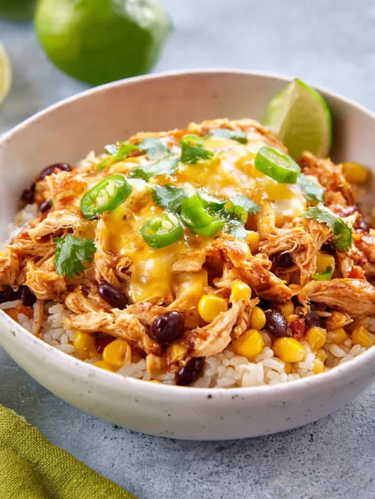 This recipe delivers maximum flavor with minimal effort – the ultimate weeknight win! First, you get perfectly seasoned chicken that shreds like a dream after hours of low-and-slow cooking. Second, the combination of beans, corn, and spices creates a hearty base that pairs beautifully with fluffy rice. Third, everyone can customize their bowls with favorite toppings for a fun interactive meal.