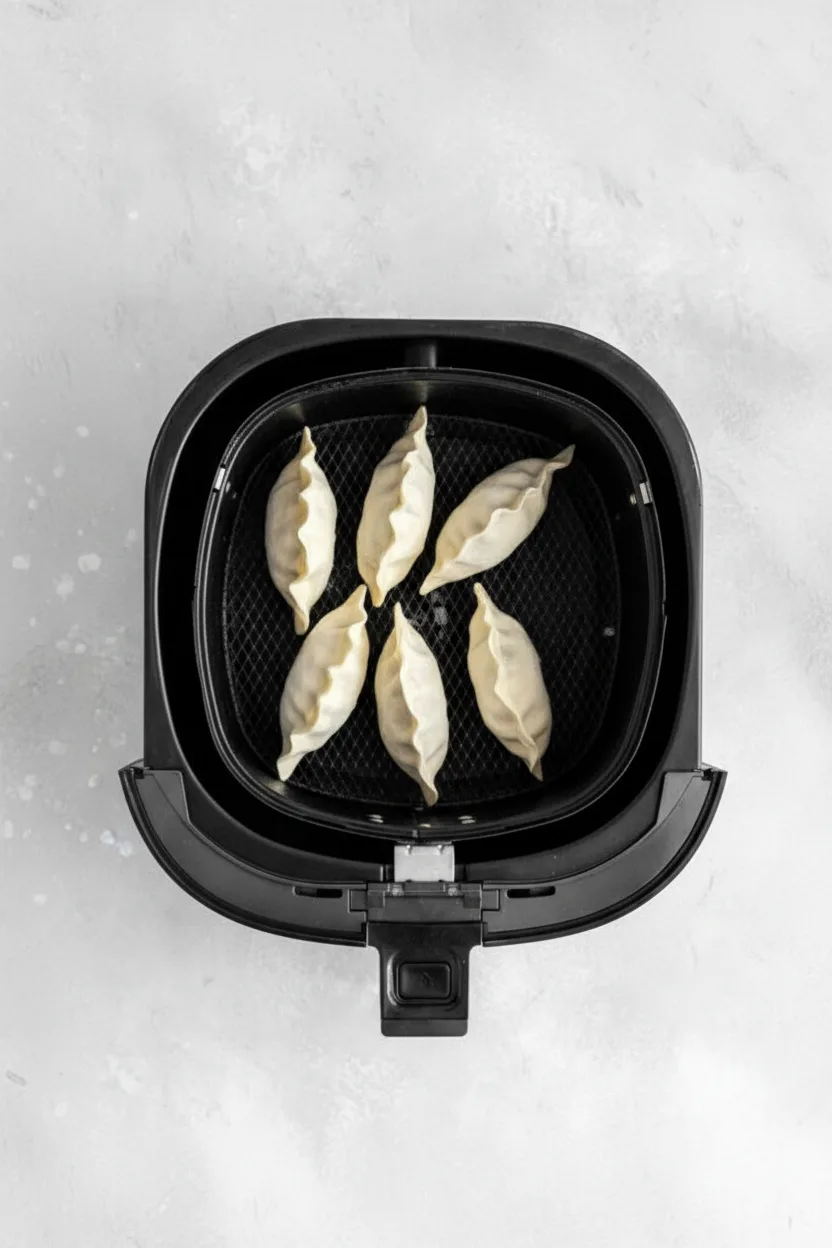 Start by preheating your air fryer to 375°F (190°C) for three minutes. This ensures immediate crisping once the dumplings enter the basket.