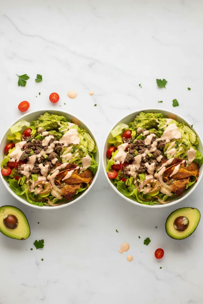 Fully Loaded Burger Bowl with “Special Sauce”