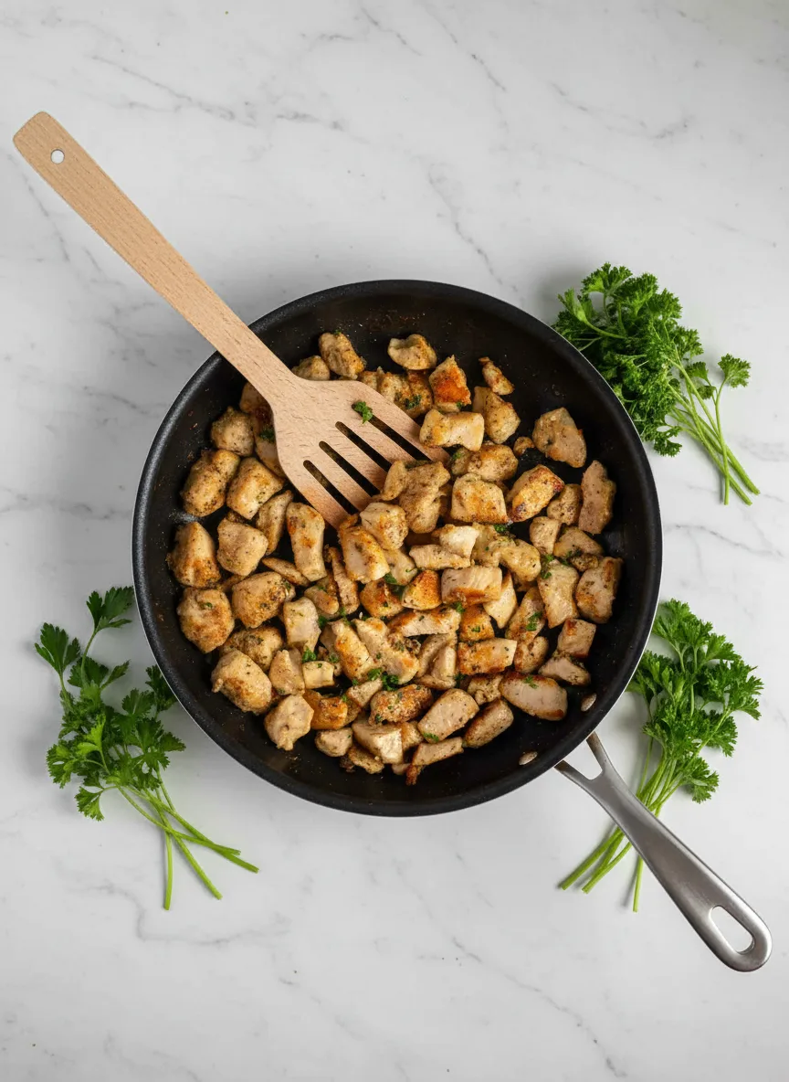 Heat olive oil in a large skillet over medium-high heat. Carefully add chicken pieces in a single layer with space between them. Cook undisturbed for 2-3 minutes per side until beautifully golden brown. Resist turning them too early – that initial sear creates the coveted crispy texture.