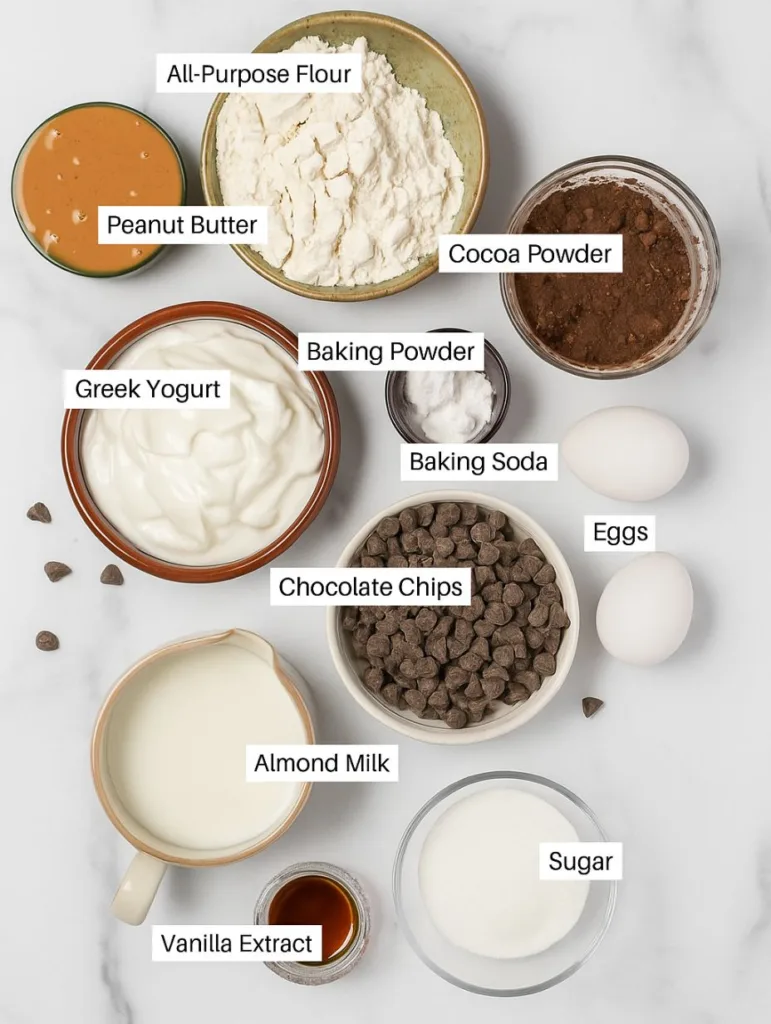 Let’s talk about the base: Greek yogurt and cocoa powder. Together, they’re the reason why these muffins are so soft and rich.