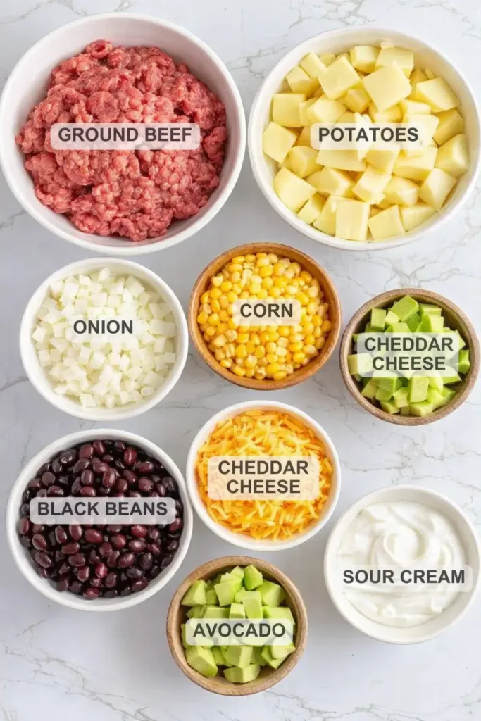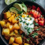 Ground beef and potato taco bowls bring solid satisfaction without complicated steps. Filled with familiar ingredients, this hearty dinner wins praise across ages. Feel free to adapt based on what’s fresh or favorite toppings available.