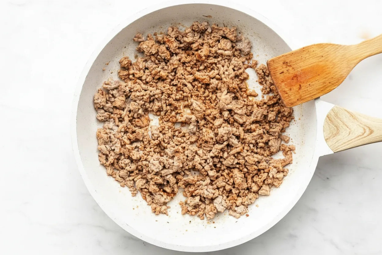 Crumble the turkey in a hot skillet over medium-high heat. Stir occasionally until fully browned—about 5-7 minutes. Don’t stir constantly; letting the meat develop a slight crust builds richer flavor. Drain any excess fat if necessary before seasoning.