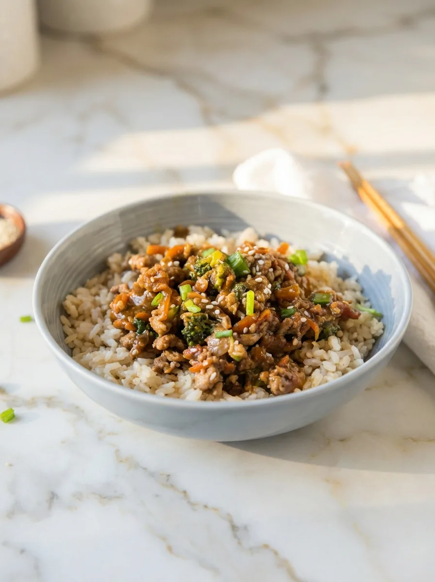 Healthy Ground Turkey Teriyaki Rice Bowl