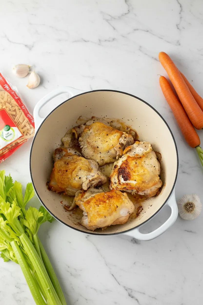 • Brown the chicken well: This creates fond (those tasty browned bits) that flavors the entire soup
