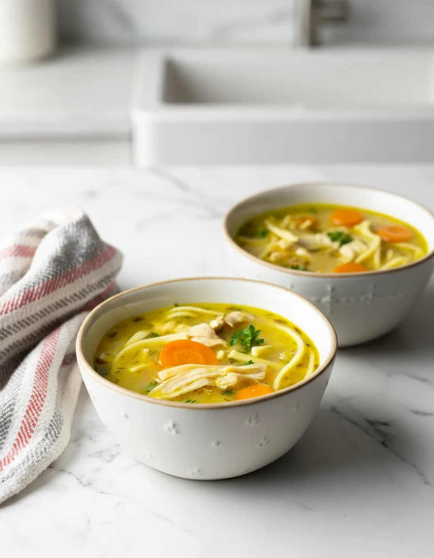 Moreover, this recipe adapts easily to what’s in your pantry. Use frozen vegetables when fresh aren’t available, swap herbs based on preference, or try different noodle shapes. For another flavorful twist, explore our ginger-garlic chicken noodle soup variation that adds zesty warmth.