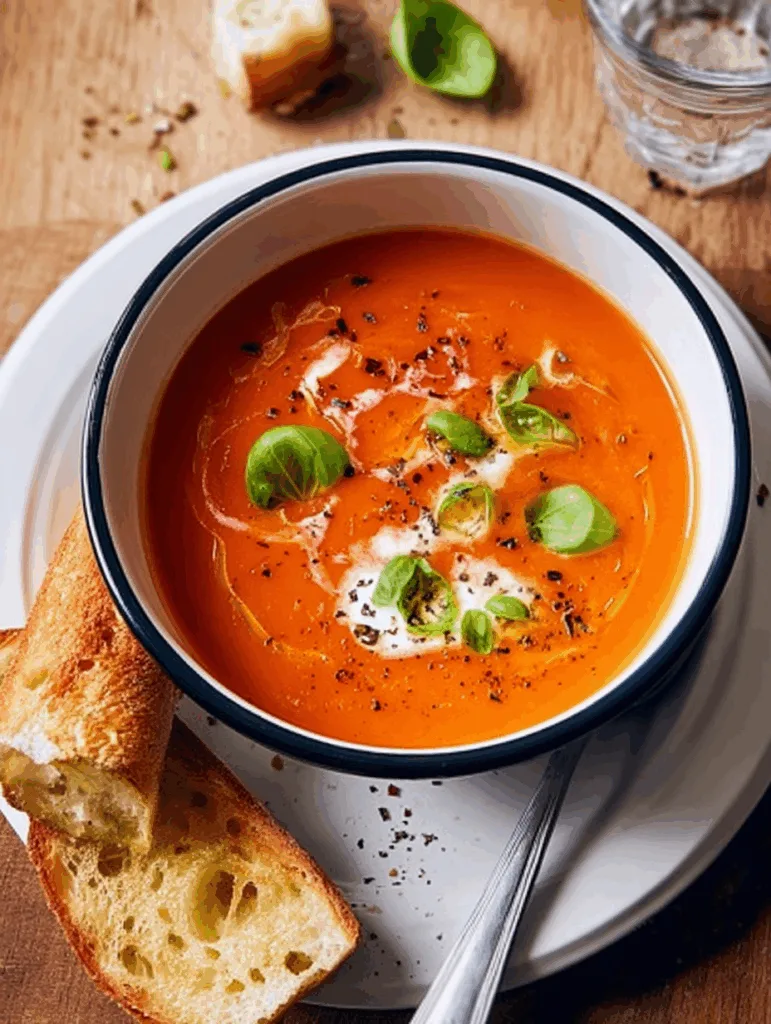 A creamy, flavorful Homemade Tomato Soup made with fresh vegetables, herbs, and a touch of cream for the perfect comfort meal.