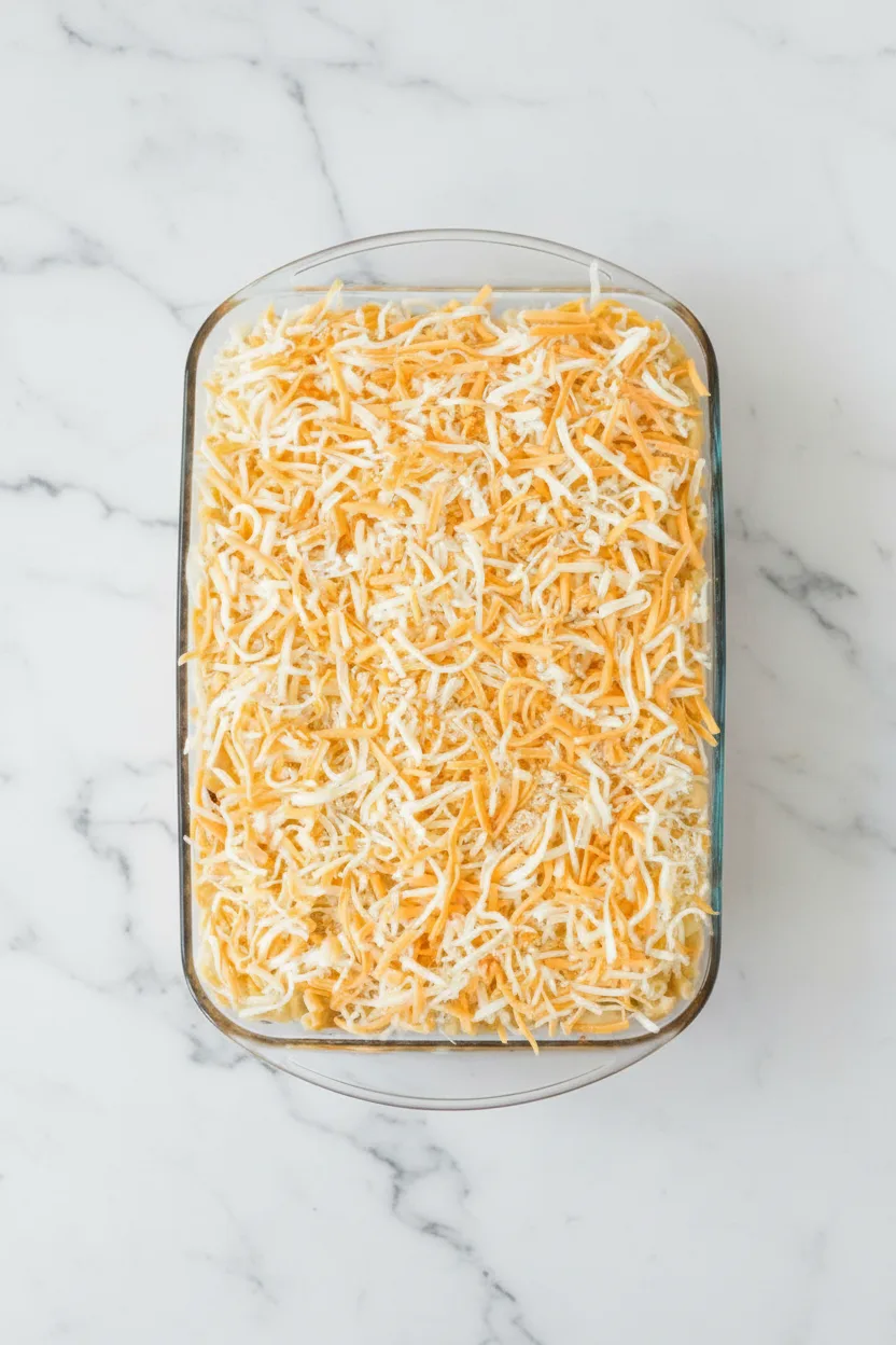 12. Sprinkle remaining 2 cups cheese over macaroni layer.