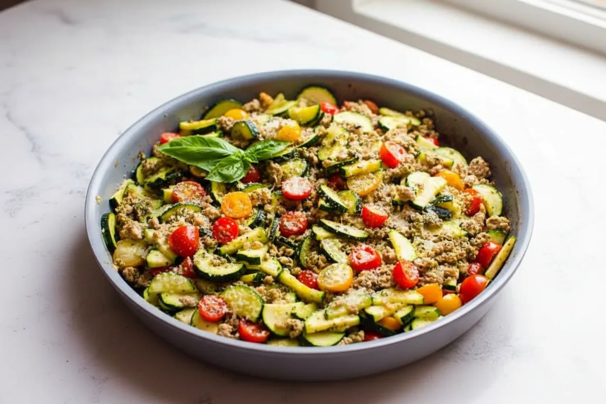 This Low Carb Ground Turkey and Zucchini Skillet proves that healthy eating doesn’t require complicated recipes or hard-to-find ingredients. In just 25 minutes, you transform ordinary components into extraordinary nourishment.