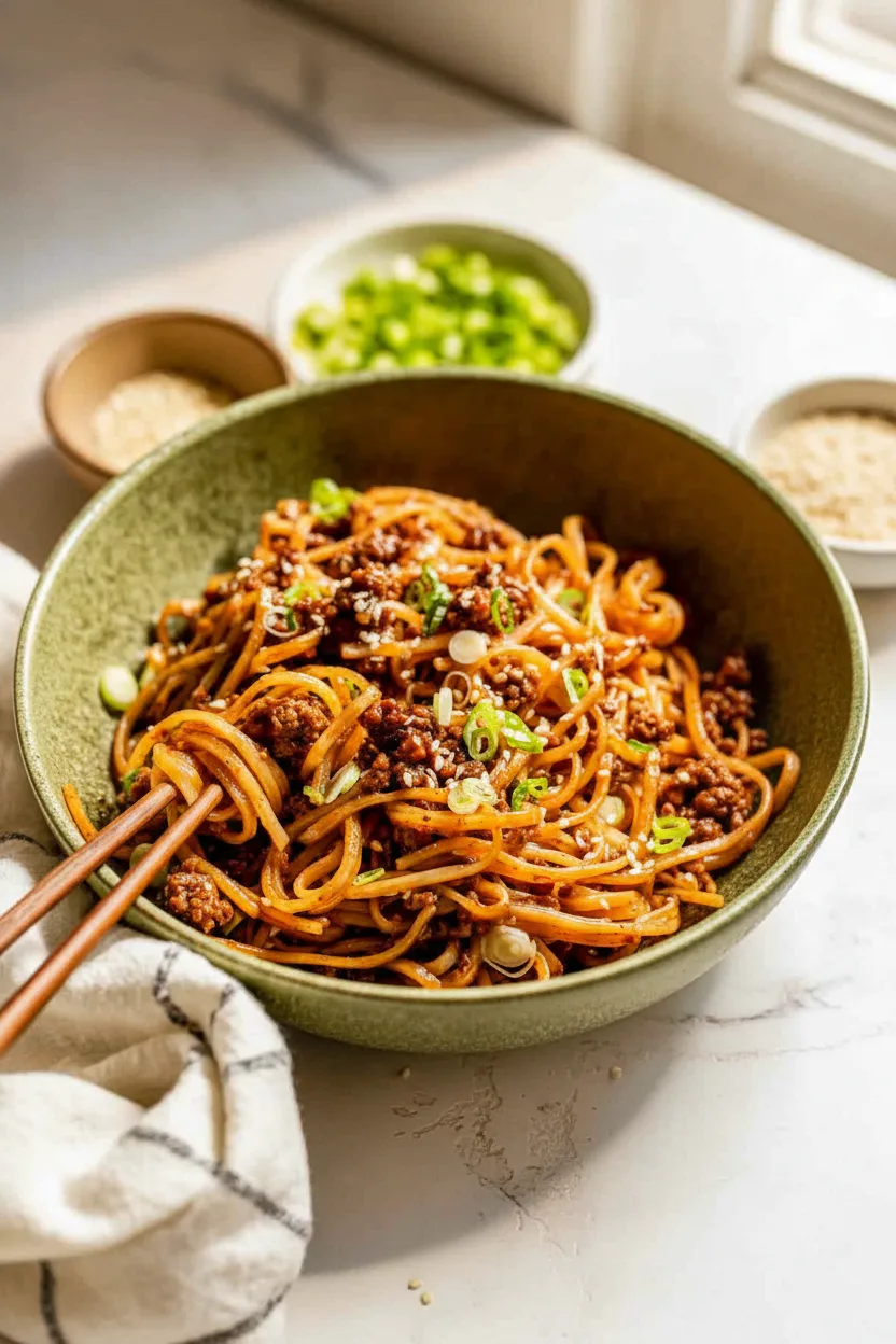 This Mongolian ground beef noodles recipe brings restaurant-quality flavors to your kitchen in just 20 minutes.