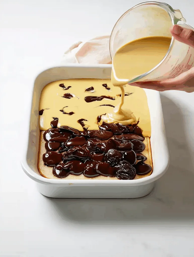 - Pour the remaining batter over the top, spreading it gently to cover the paste.