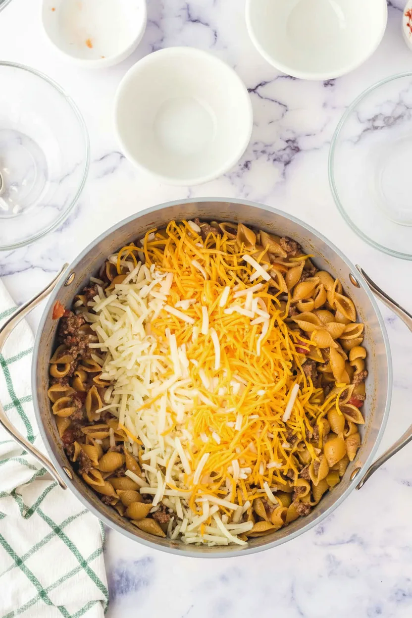 Ground beef provides the hearty backbone of this dish. You could substitute ground turkey or textured vegetable protein for a lighter option. Shell pasta holds sauce beautifully, but feel free to use elbow macaroni or rotini instead.
