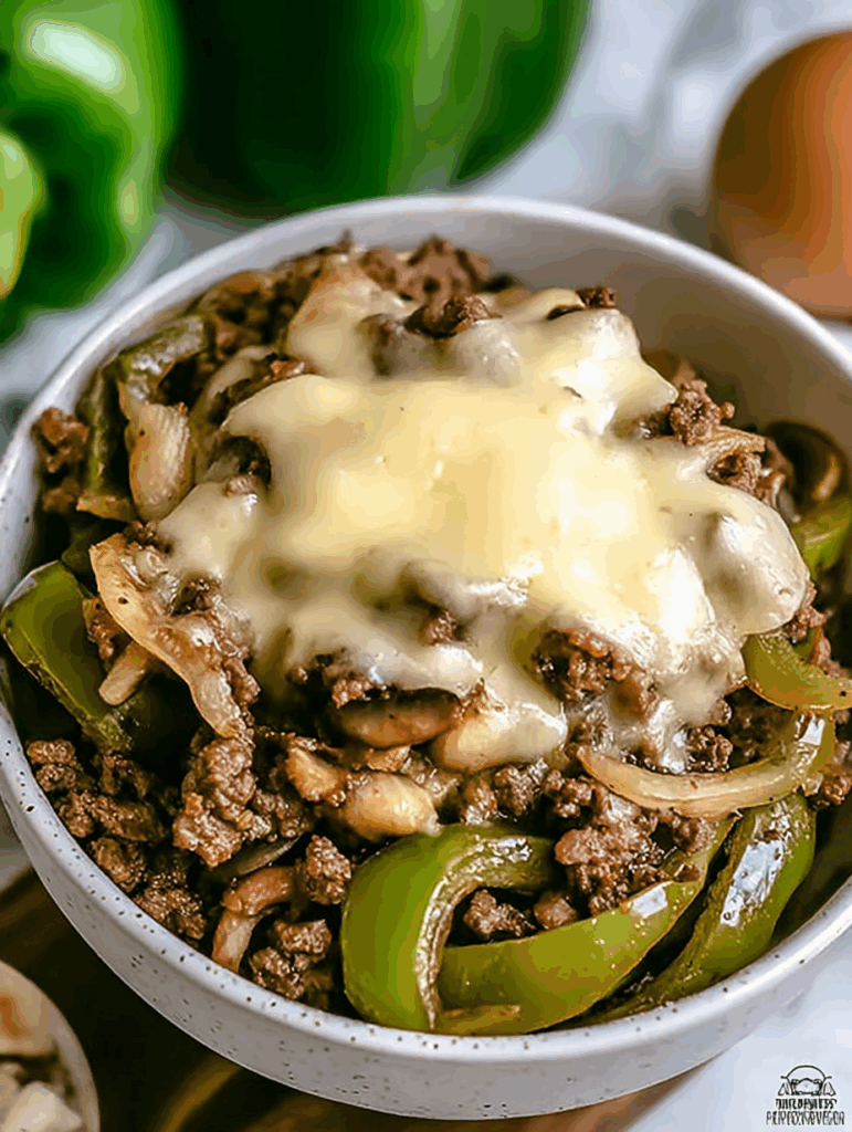 These Philly Cheesesteak Bowls combine juicy steak, sautéed peppers, and melty cheese in a low-carb, protein-packed dish.