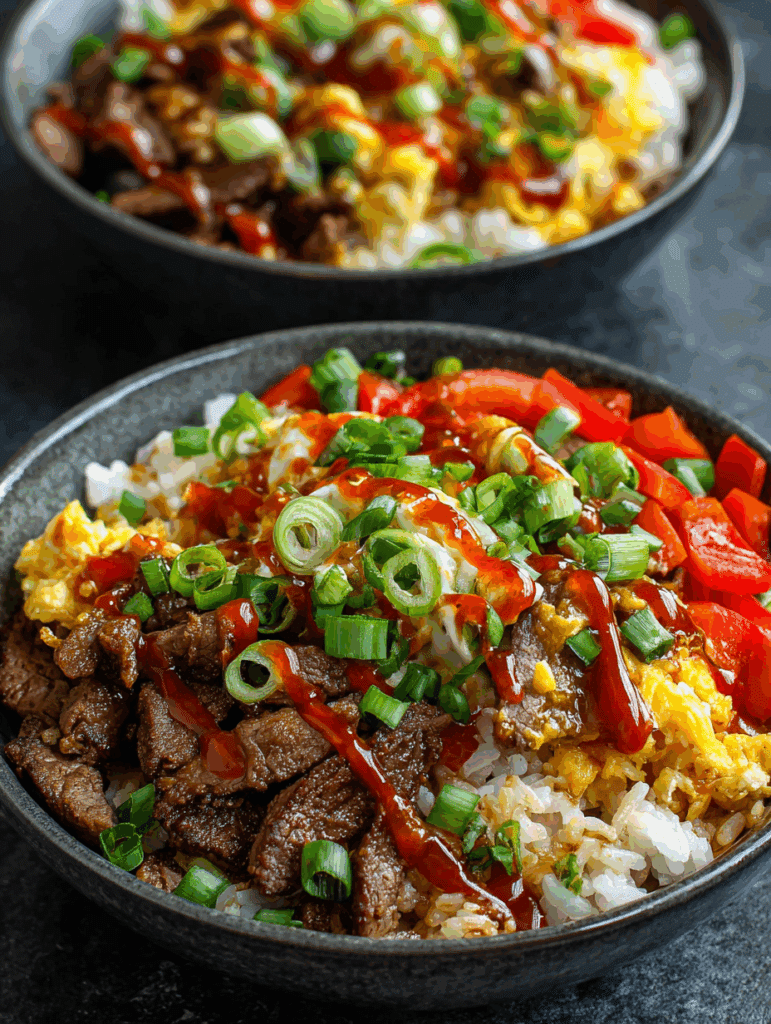 Each bite of this bowl is built with intention. Lean steak brings around 26g of protein per serving. The garlic parmesan rice balances comfort with flavor. The veggies? Sautéed to golden softness and rich in antioxidants. But let’s talk about that cheese sauce—made from low-fat cheddar and smooth slices, it’s indulgent without being over the top.