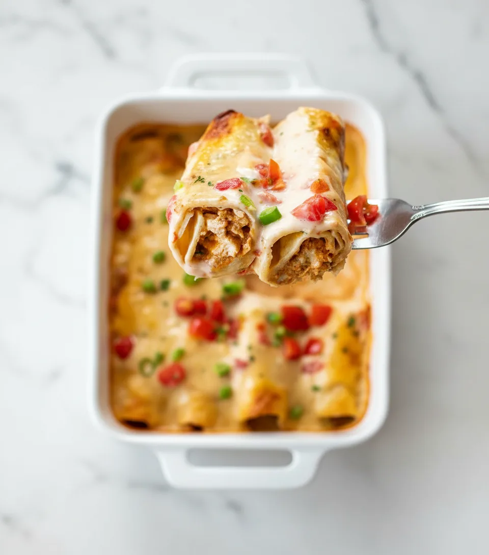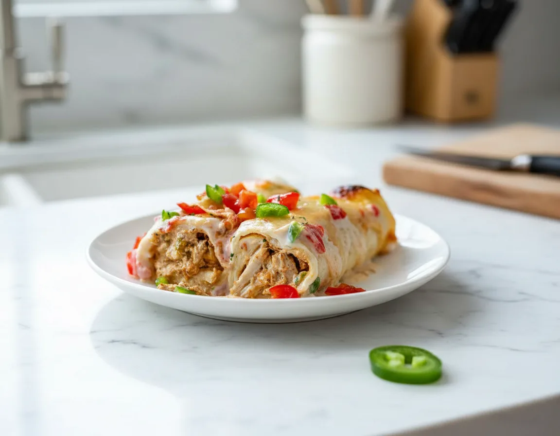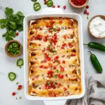 These creamy Queso Chicken Enchiladas combine tender shredded chicken with a velvety cheese sauce for an irresistible family meal.