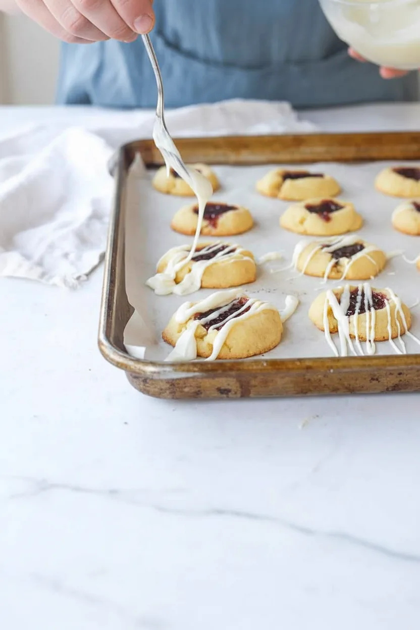 The sweet-tart raspberry jam creates a beautiful contrast against the rich buttery cookie base, while the drizzle topping adds professional flair.