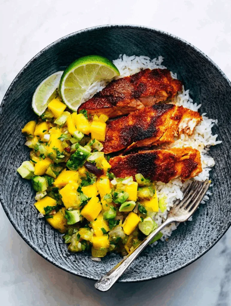 This bowl is ideal for weeknights when you want something special but don’t have time for complicated prep. You can make the mango salsa ahead and store it in the fridge, then cook the salmon fresh just before serving. The BBQ glaze caramelizes beautifully, giving you that satisfying bite of smoky sweetness with every forkful.