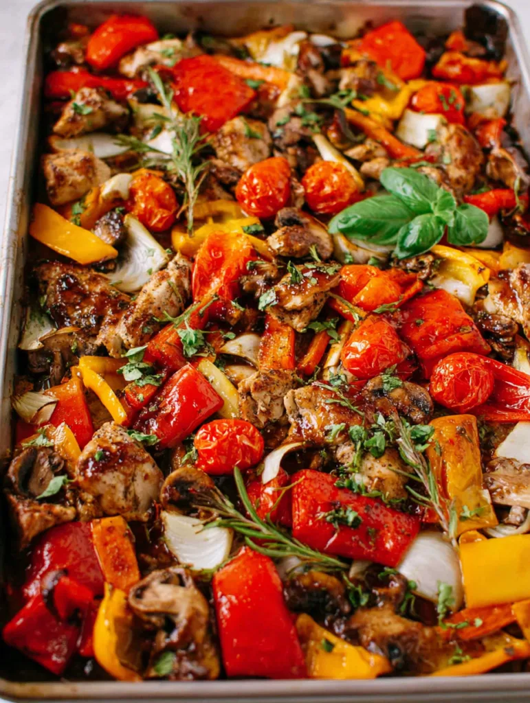 This Sheet Pan Honey Balsamic Chicken and Veggies recipe is your golden ticket to a flavorful dinner in under 35 minutes. With juicy chicken pieces tossed in a tangy-sweet sauce and roasted alongside colorful bell peppers and onion, it delivers restaurant-worthy taste without the hassle. Perfect for busy weeknights, meal prep, or impressing unexpected guests with minimal effort.