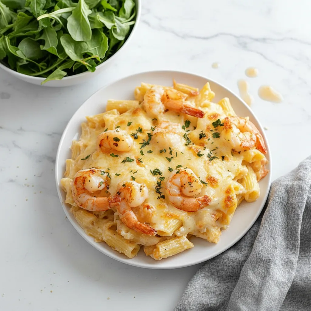 This shrimp scampi pasta bake delivers restaurant-worthy flavor with home kitchen convenience.