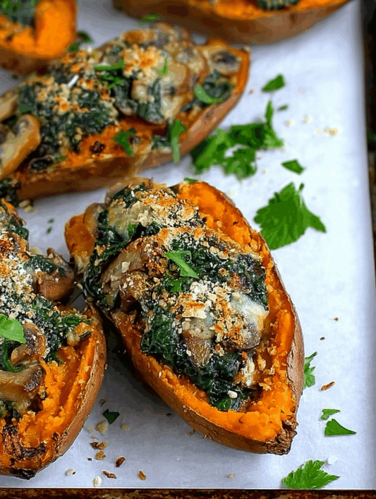 Spinach Mushroom Twice-Baked Sweet Potato