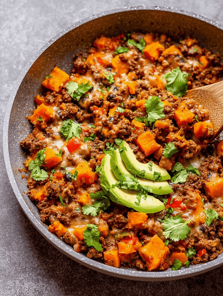 Southwest Ground Beef and Sweet Potato Skillet