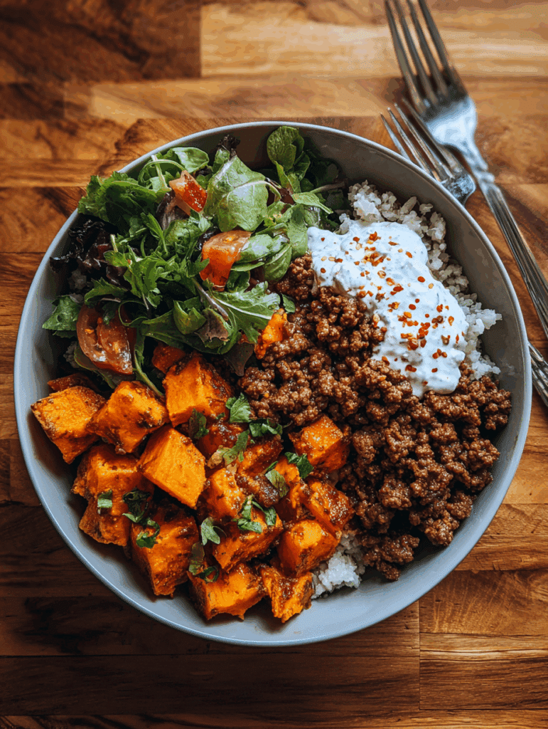 Spicy Ground Beef and Sweet Potato Protein Bowl