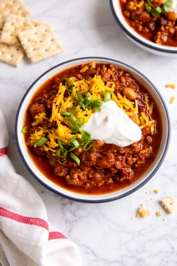 Hearty ground beef chili with rich tomato flavor and perfectly balanced spices